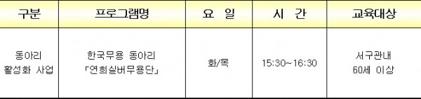 제목 | 서구연희노인문화센터 한국무용 동아리 강사모집 공고