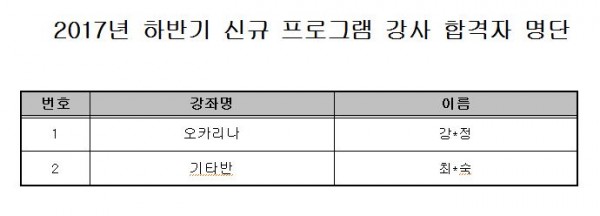 제목 | 2017년 서구연희노인문화센터 프로그램 강사(오카리나, 기타반) 합격자 명단