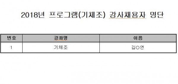 제목 | 2018년 서구연희노인문화센터 프로그램(기체조) 강사 합격자 명단
