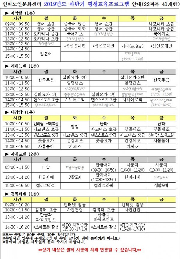 제목 | ***2019년 하반기 평생교육 프로그램 수강생 모집 및 접수안내***