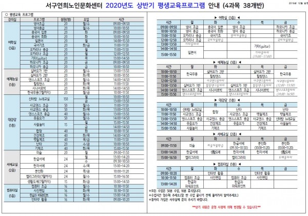 제목 | **2020년 상반기 평생교육프로그램 접수안내**