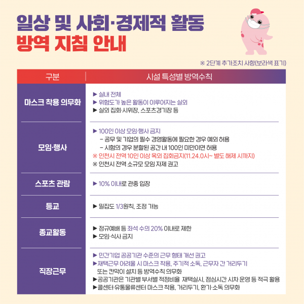 제목 | [코로나19] 인천시 사회적거리두기 2단계 방역조치 시행
