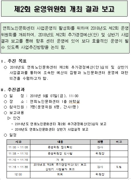 1) 2018년도 연희노인문화센터 제2차 추가경정예산(안) 심의 보고