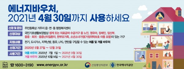 제목 | 에너지 바우처 사용 안내 페이지 정보 작성자 |관리자 작성일 |21-02-02 10:26 조회 |925회 이전글 다음글 목록 본문 에너지 바우처 사용 안내입니다 이전글 다음글 목록 이전글2018년 연희노인문화센터 자원봉사자 모집 안내 다음글코로나19 확산방지를 위한 인천가족공원 전면폐쇄