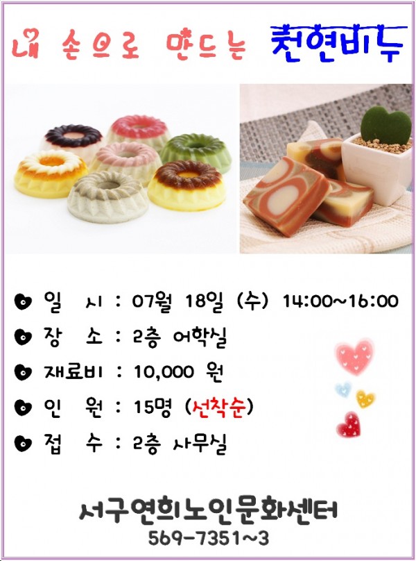 * 천연비누 만들기 * 페이지 정보 작성자 관리자 댓글 0건 조회 2,774회 작성일 12-06-14 11:33 본문 . 목록 이전글2012년도 급식 주부식 납품업체 공개입찰 공고문 다음글- 바둑교실 자원봉사자(강사) 모집 - 댓글목록 댓글목록 등록된 댓글이 없습니다.