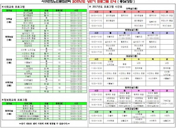 2017년 상반기 프로그램 시간표 안내