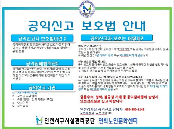 공익신고 보호법 안내 페이지 정보 작성자 관리자 댓글 0건 조회 793회 작성일 19-07-24 11:49 본문 공익신고 보호법 안내 목록 이전글***2019년 하반기 평생교육 프로그램 수강생 모집 및 접수안내*** 다음글2019년 [포스코 지원] 신규 프로그램 수강생 당첨자 발표(한국무용, 캘리그라피, 생활도예) 댓글목록 댓글목록 등록된 댓글이 없습니다.