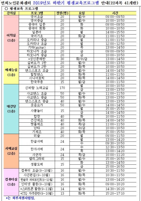 ***2019년 하반기 평생교육 프로그램 수강생 모집 및 접수안내***