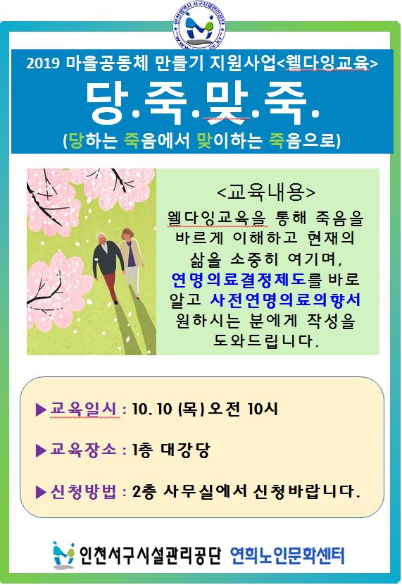 웰다잉교육 당.죽.맞.죽 교육 안내