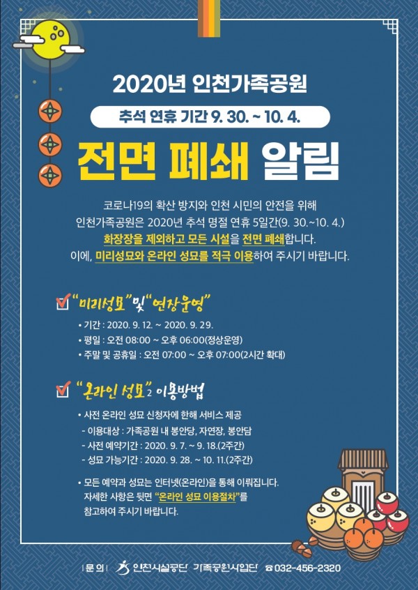 [코로나19]추석연휴 온라인 성묘(인천가족공원) 페이지 정보 작성자 관리자 댓글 0건 조회 849회 작성일 20-09-22 14:19 본문 출처 : 인천광역시청,인천시설관리공단 목록 이전글[코로나19]추석연휴방역대책 다음글[친환경 교통주간]20.9.16~20.09.22 댓글목록 댓글목록 등록된 댓글이 없습니다.