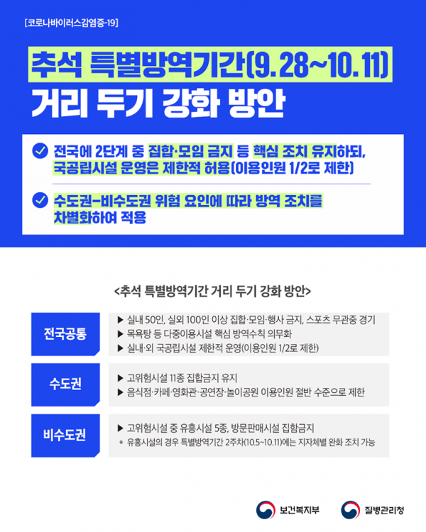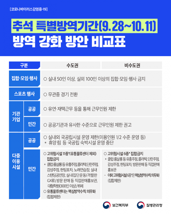[코로나19]추석특별방역기간(2020.9.28~10.11) 페이지 정보 작성자 관리자 댓글 0건 조회 832회 작성일 20-09-28 15:16 본문 ------- 목록 이전글[코로나19]추석연휴 생활방역수칙 다음글[코로나19]추석연휴방역대책 댓글목록 댓글목록 등록된 댓글이 없습니다.