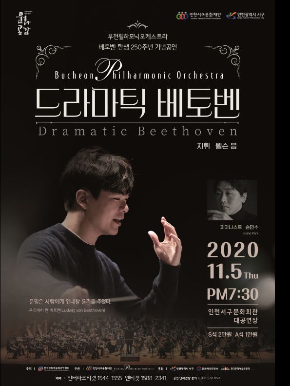 인천서구문화재단에서는 한국문화예술회관연합회 방방곡곡 문화공감 우수공연인 베토벤 탄생 250주년을 맞아 기념공연 부천필하모닉 오케스트라와 함께하는 <드라마틱 베토벤>과 2020 연극의 해를 맞이하여 연극 <물고기 여인> 을 다음과 같이 개최하오니, 많은 관람 바랍니다.