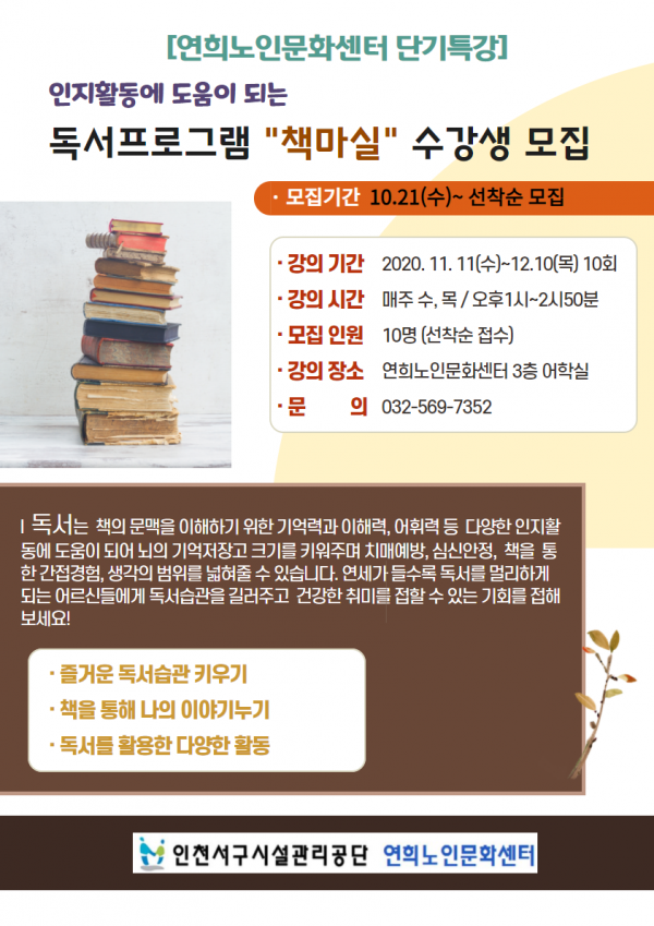 노인독서 프로그램 책마실을 함께하실 수강생을 모집합니다~!