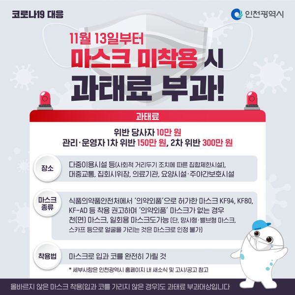 [코로나19] 11월13일부터 마스크착용의무화 페이지 정보 작성자 관리자 댓글 0건 조회 962회 작성일 20-11-13 15:37 본문 ```` 목록 이전글2020년 겨울방학 중 사회복지 실습생 모집 다음글노인성교육 실시 댓글목록 댓글목록 등록된 댓글이 없습니다.