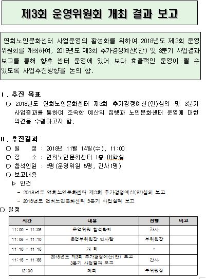 1) 2018년도 연희노인문화센터 제3차 추가경정예산(안) 심의 보고