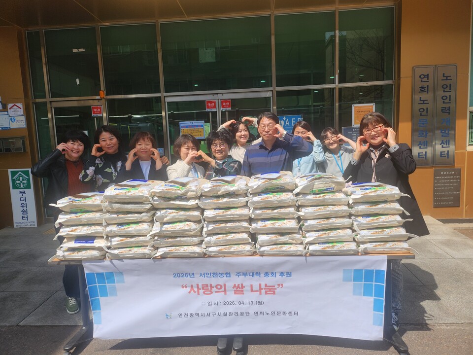 서인천농협 주부대학 총동창회, 인천 서구 연희노인문화센터에 사랑의 쌀 전달
